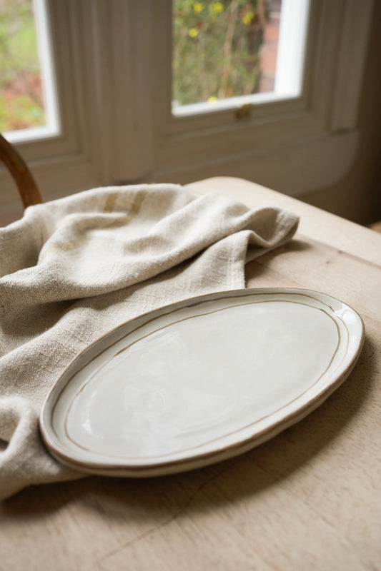 Hand Painted Breton Stripe Oval Plate - Taupe