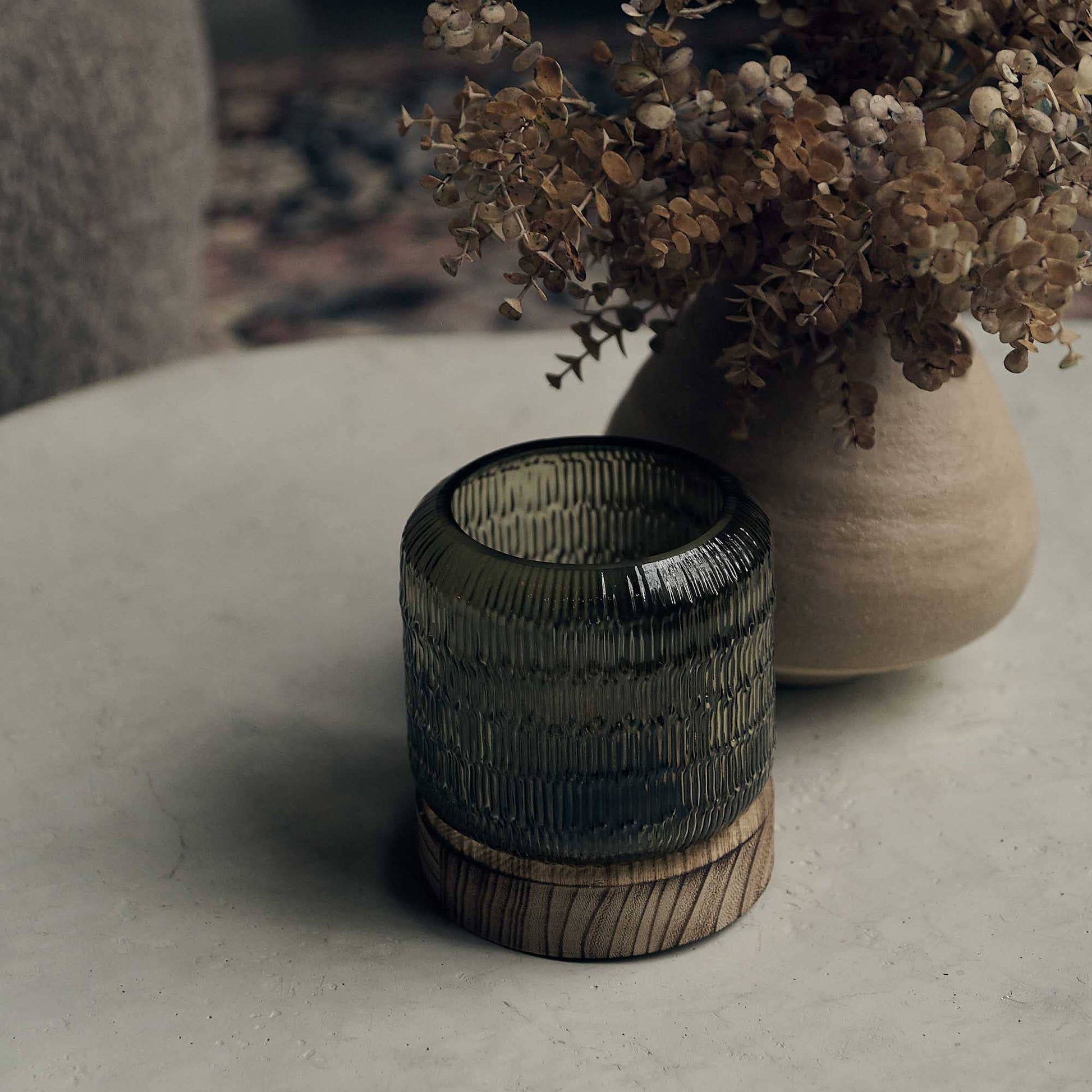 With its ridged glass design and wooden base, our Marielle Portable Table Lamp catches the eye while also creating the most inviting glow that you can take anywhere.