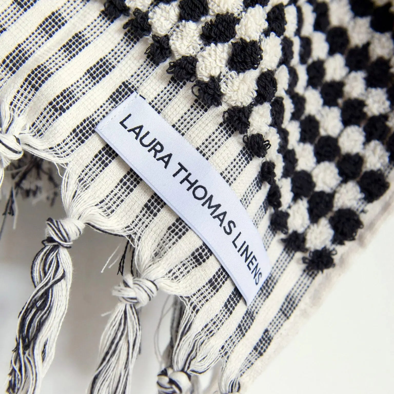 Matches the Laura Thomas Co Black + White Spot Bath Towels.