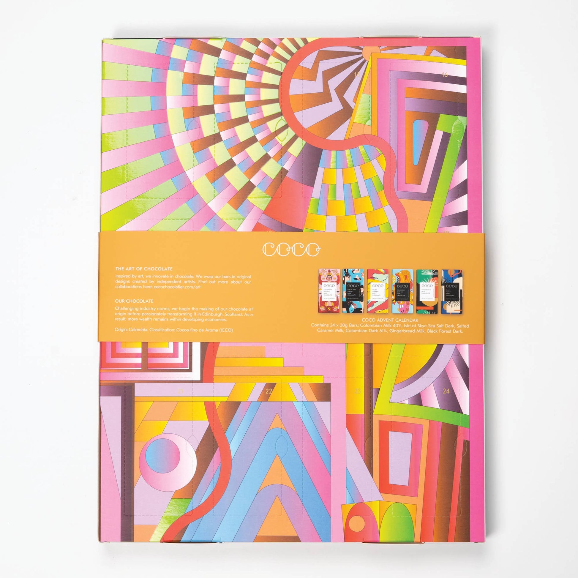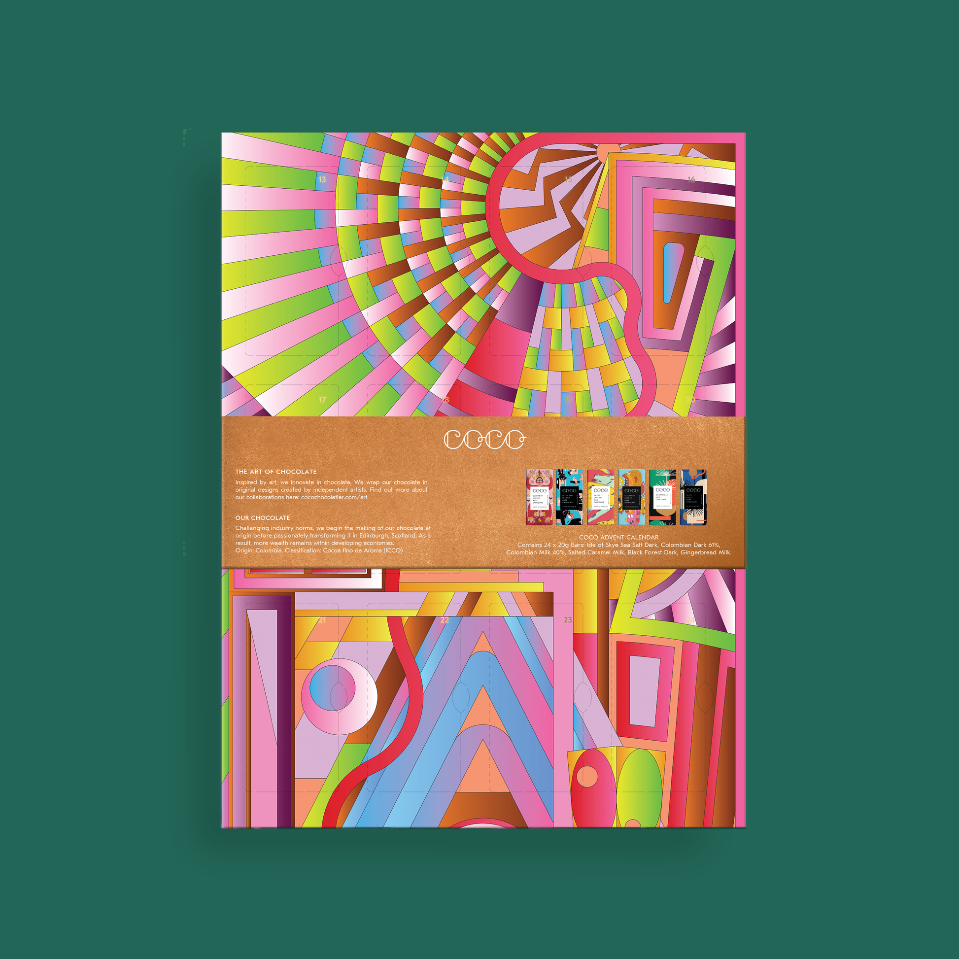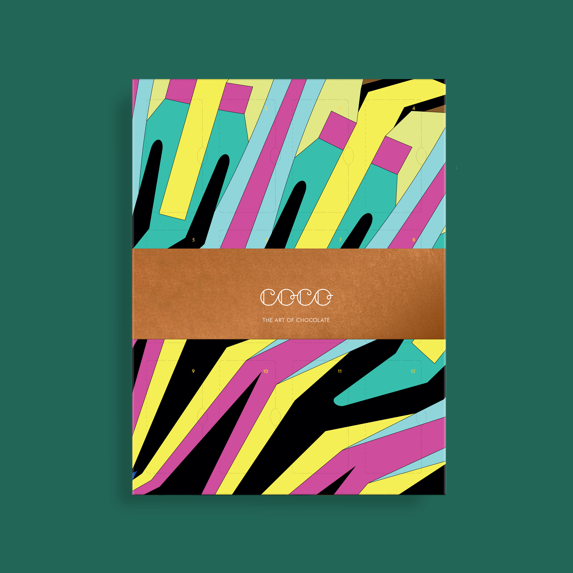 COCO’s bestselling Advent Calendar is back for another festive season of design and delight. This striking, oversized calendar includes 24 individually wrapped mini bars (480g total) made from our ethically sourced, single-origin Colombian chocolate.