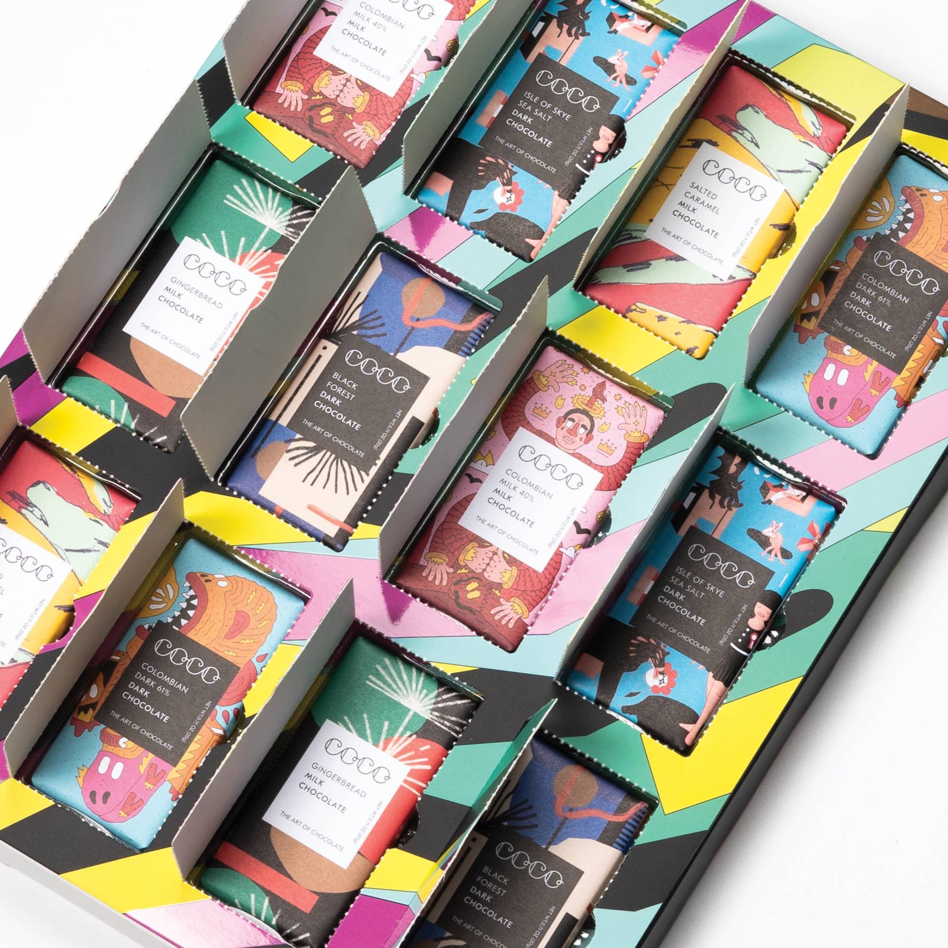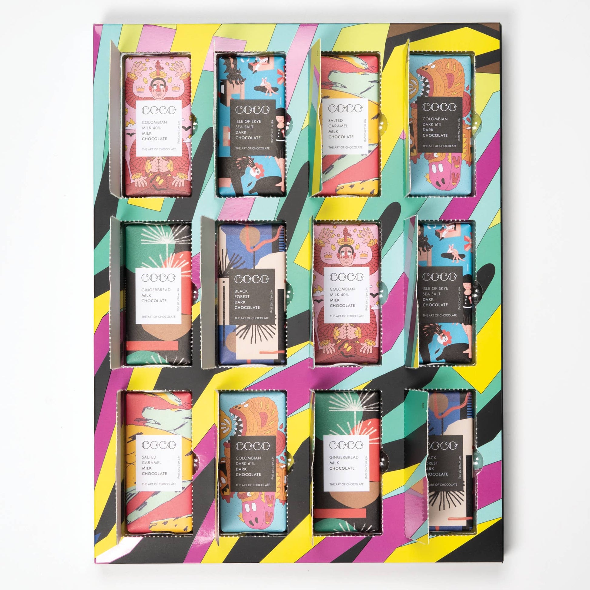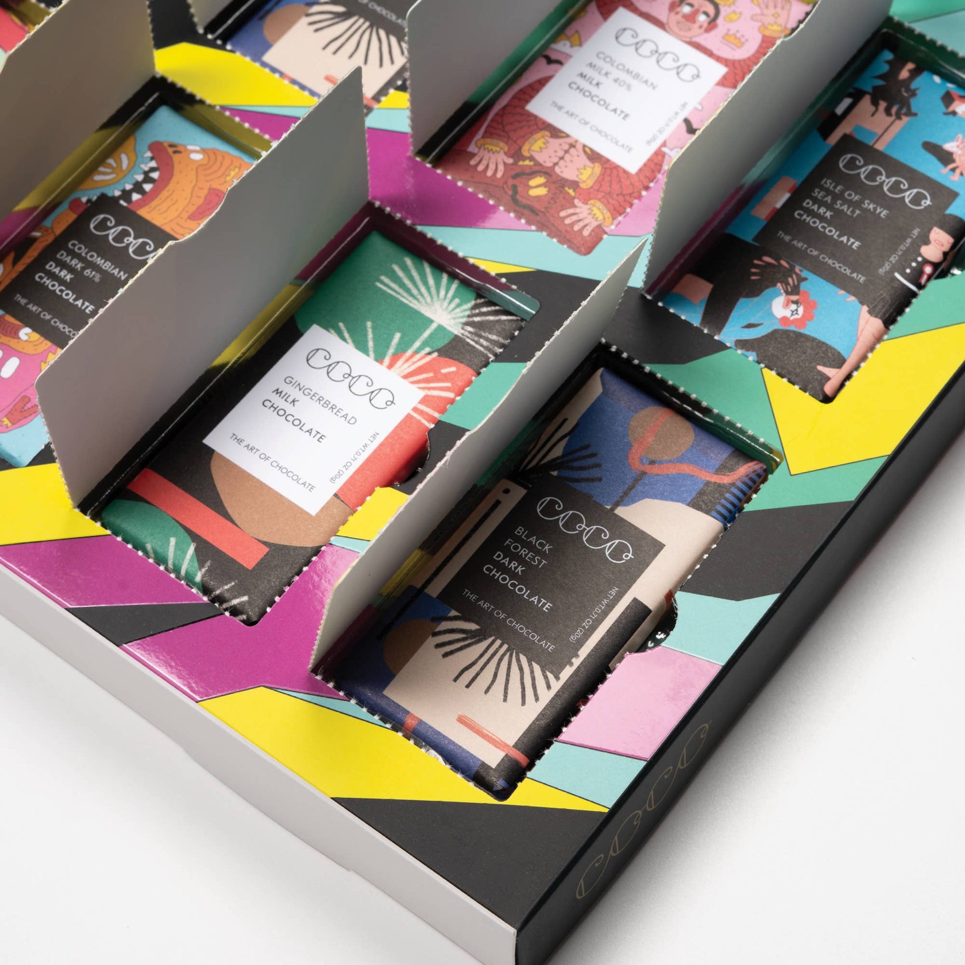 COCO’s bestselling Advent Calendar is back for another festive season of design and delight. This striking, oversized calendar includes 24 individually wrapped mini bars (480g total) made from our ethically sourced, single-origin Colombian chocolate.