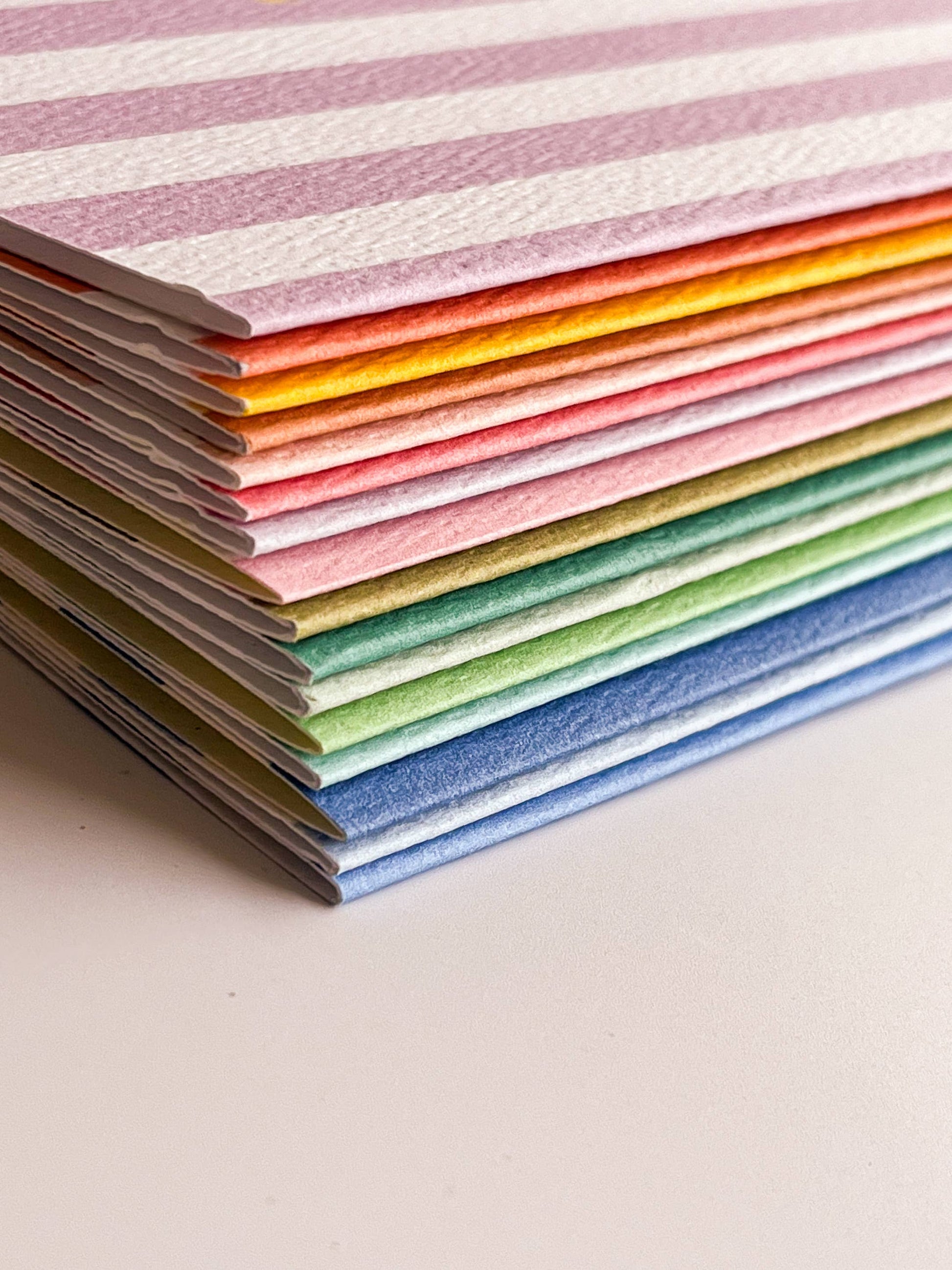 Stripes that adapt to everything in every season are now available in Fin-style notebooks with a variety of color options. You can create a small striped notebook series featuring your favorite colors.