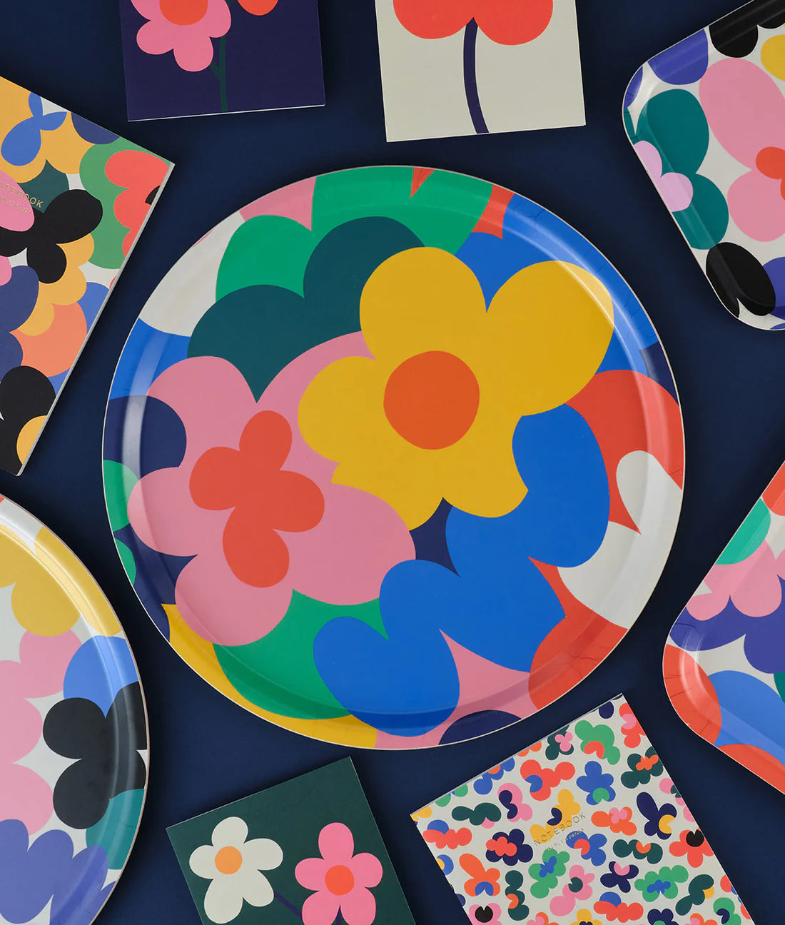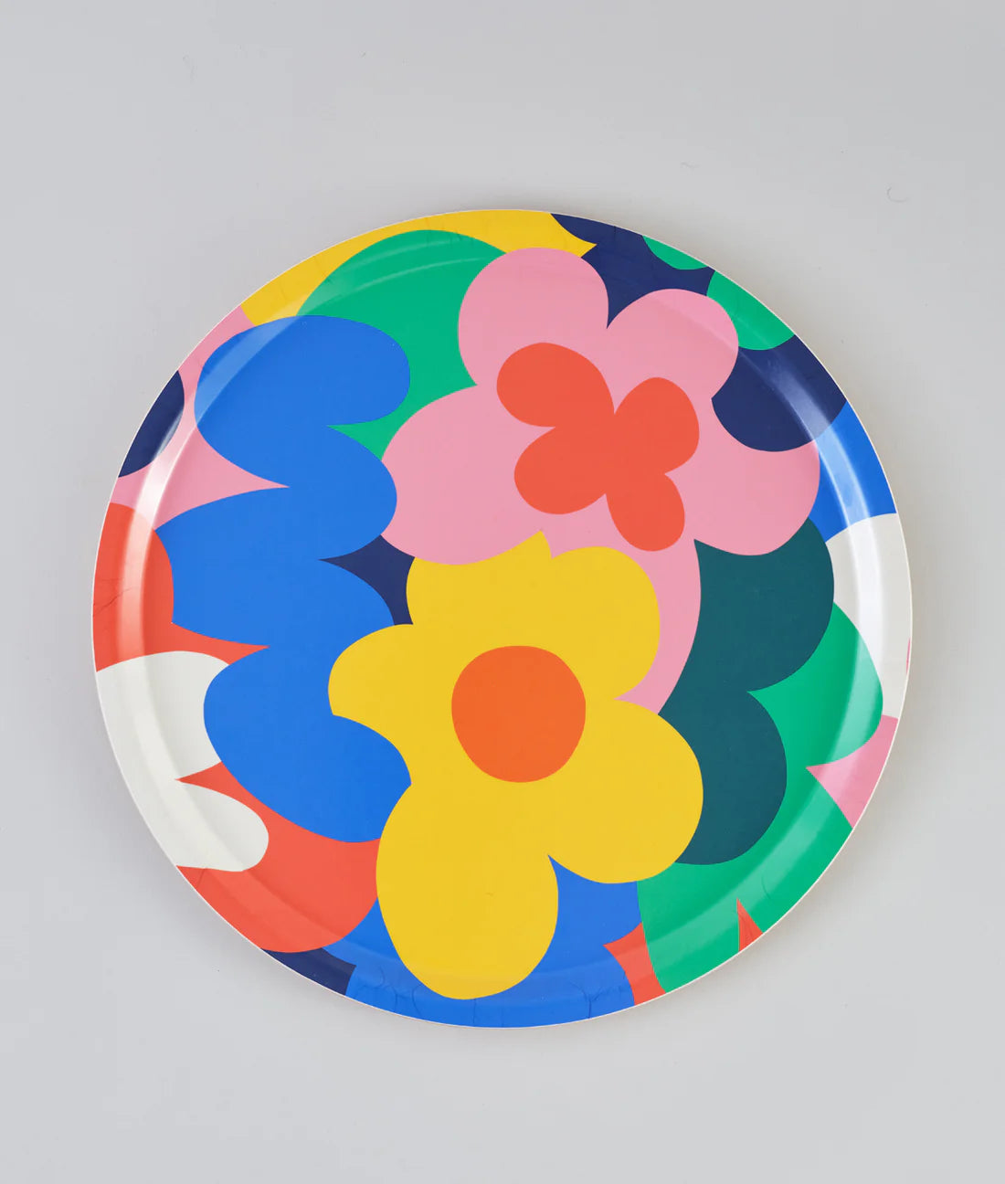 Big bold blooms adorn this bright and vibrant circular art tray. Designed to stand out, this art tray is a burst of joyful colour and abstract floral shapes.