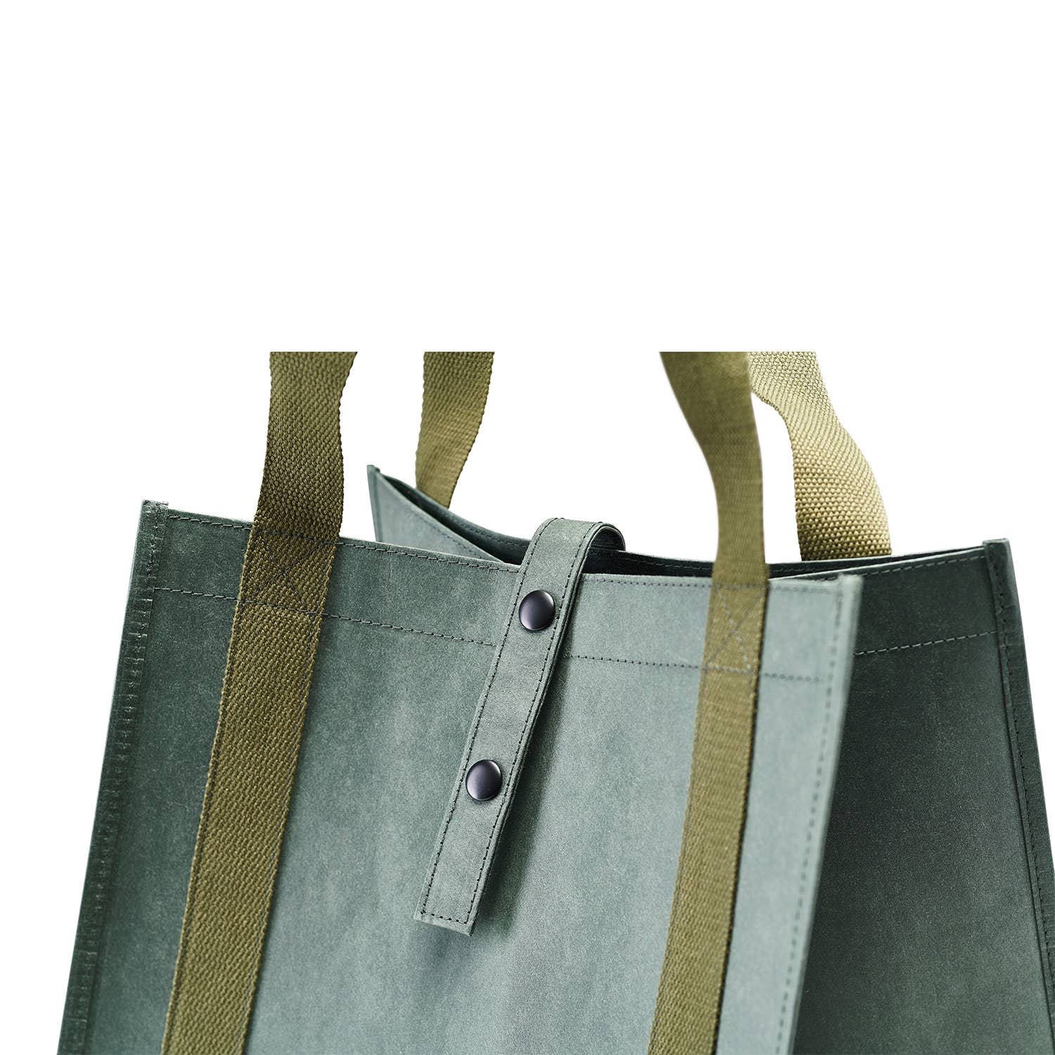 This practical shopper bag is crafted from HAYASHI paper leather which is constructed from wood pulp derived from cellulose fibres and is 100% recyclable.