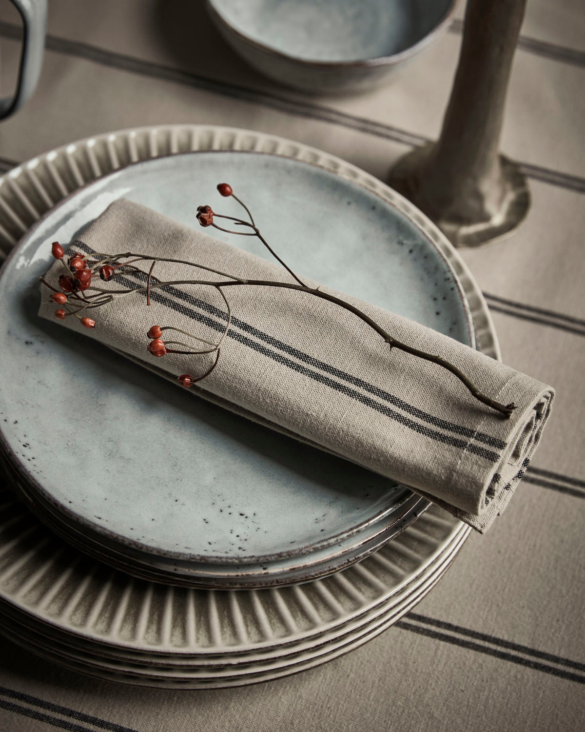 The napkins from House Doctor are finished with dark yarn-dyed stripes for a casual touch that lets you pair them with dinnerware in any design you fancy.