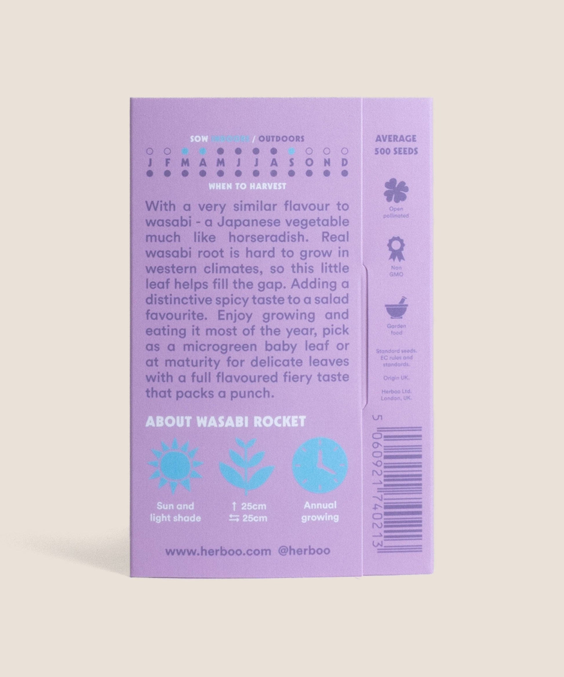 Wild rocket seeds that grow with a spicy flavour just like wasabi into delicate salad leaves.