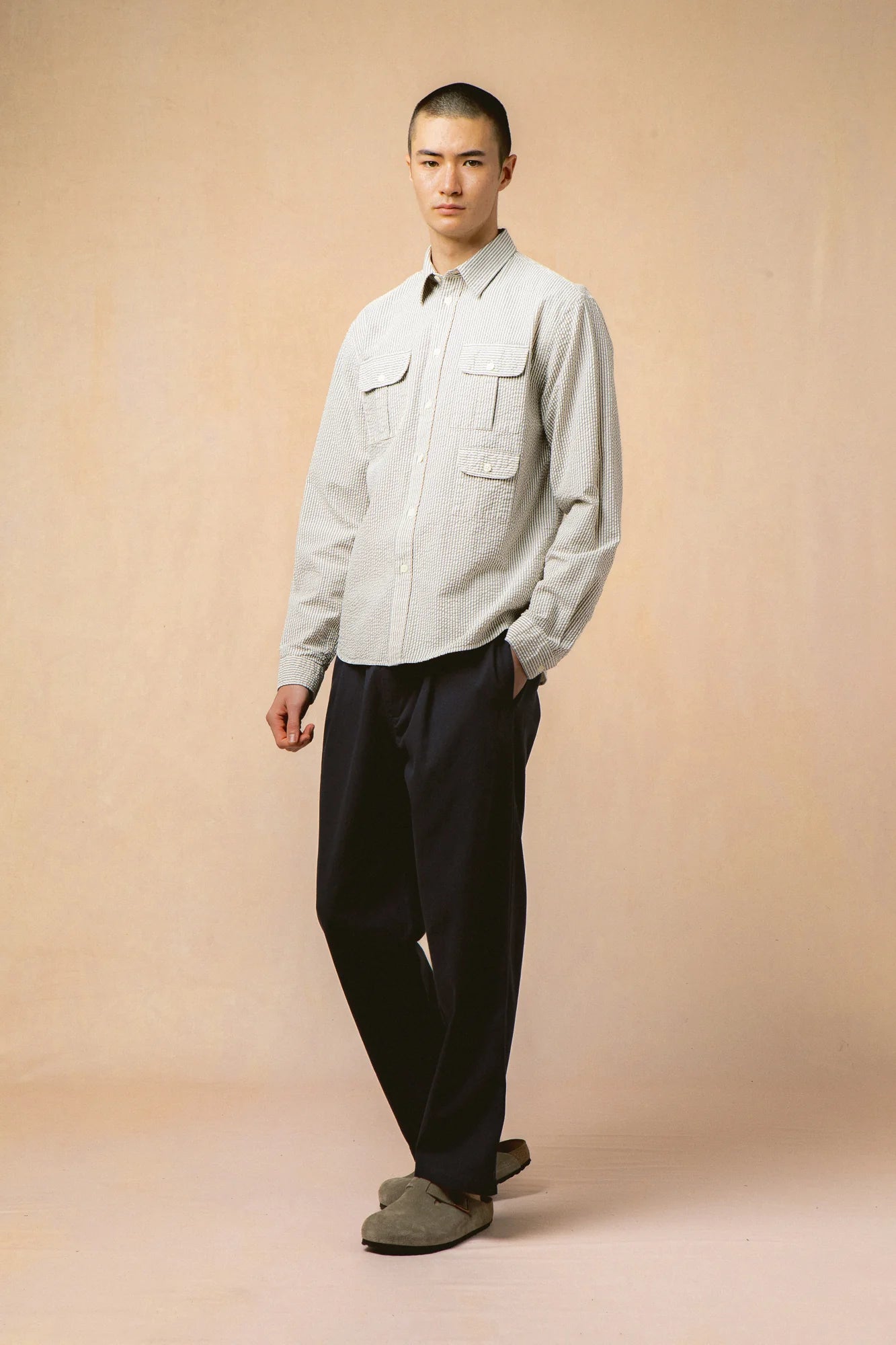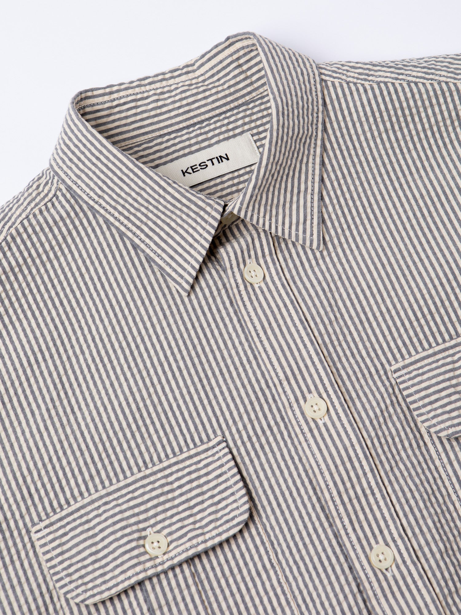 Kinnaird Shirt in Ecru / Blue Stripe Seersucker